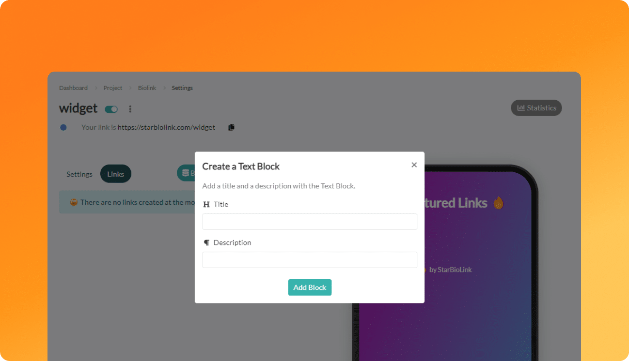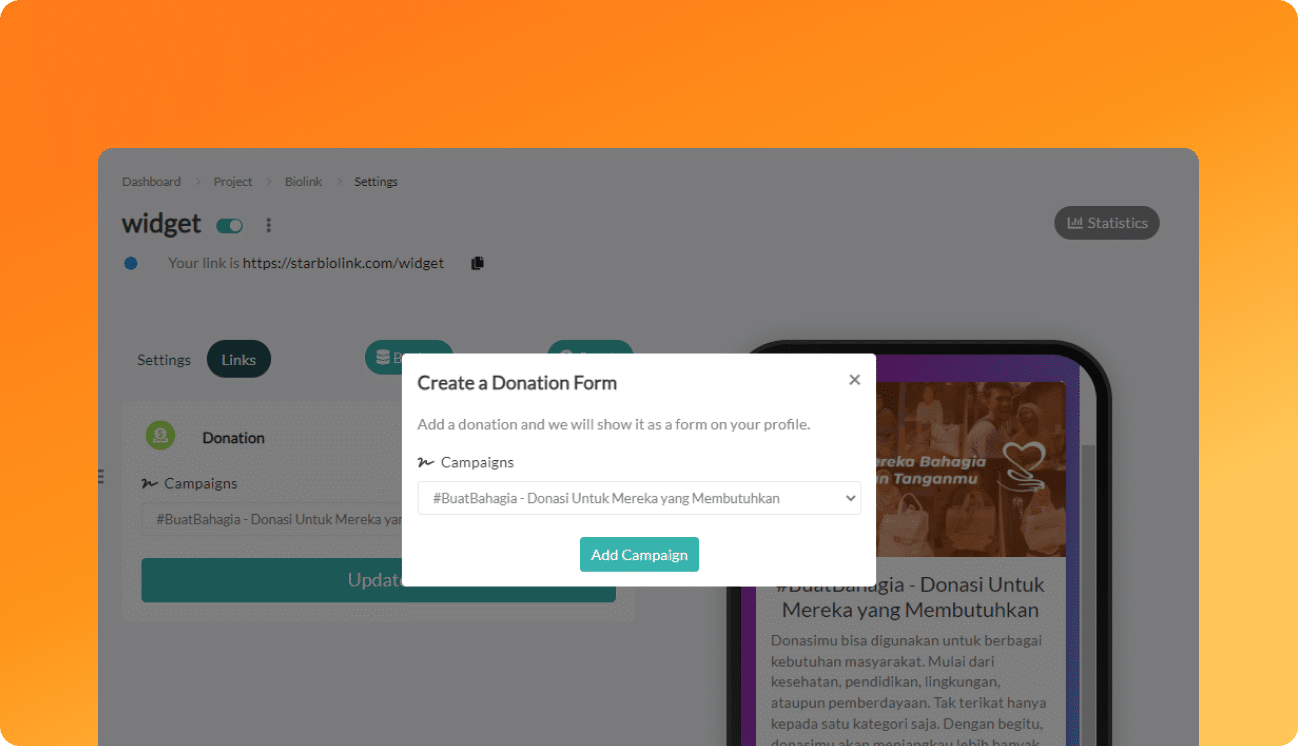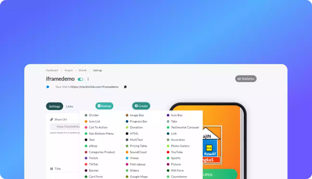 Anda dapat menemukan berbagai widget yang bisa anda tambahkan ke dalam Biolink milik anda, sehingga anda dapat memaksimalkan Biolink.